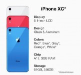 iPhone XC:6.1吋 LCD 屏,A12处理器,3GB RAM,可能支持3D Touch,前置Face ID,主摄为单摄像头,预计有红蓝灰橙白五色,64GB/256GB 两个版本,双面玻璃,中框铝合金; iPhone XS:分为5....