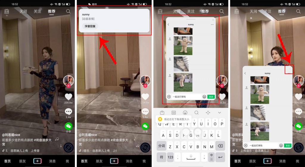 而且闪达窗口的开启方式非常简单,打开应用后,只需要从下往上滑动屏幕不松手,就能看到底部出现的两个选项,一是浮窗,二是迷你浮窗。其中前者是将应用缩小到整个屏幕的三分之一大小,你可以在上面进行任何操作;后者则是将应用缩小到最小,只起到信息更新、提醒作用。这样一来,当用户在用OPPO Find X3看抖音的时候,如果有微信或者 QQ 消息来,就可以将抖音变为浮窗,然后再点开微信,就可以边刷抖音边聊天了,大大减少了应用切换的繁琐操作。