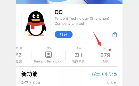 在五天前,QQ终于更新了,推出 8.8.55 版本,而本次更新内容特别大,指的是更新包大小,而不是说功能特别多, 大小为:879MB,你没有看错,一款聊天软件居然接近GB,由此可见遭殃就是16G或者32GB存储手机。