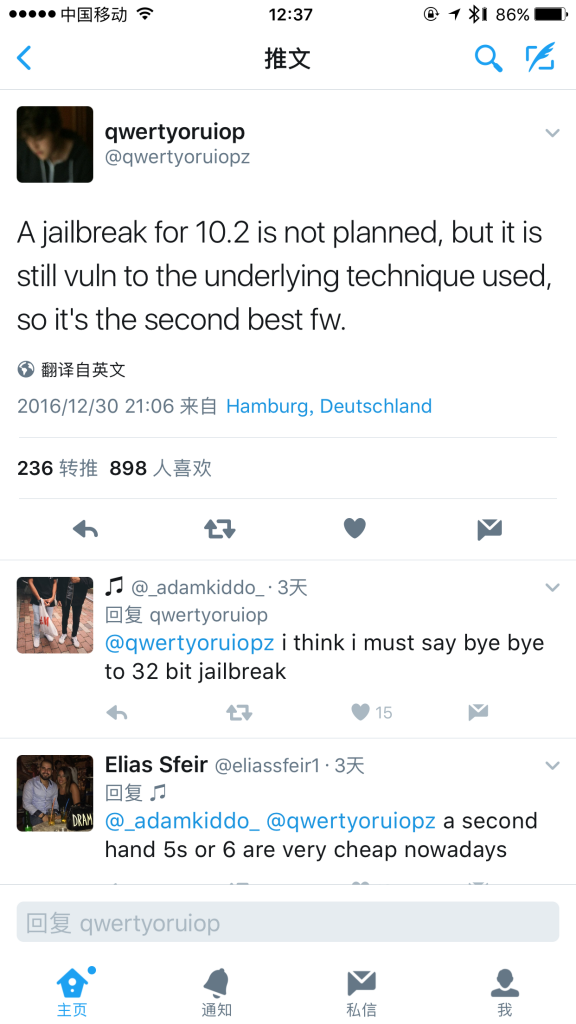 对于 Luca Todesco的态度,雷锋源也表示非常理解,毕竟10.1.1越狱才刚发布,间隔这么短时间就推出iOS10.2越狱显然不理智,何况那么重要的零日漏洞应该留在后面的版本,据各种消息显示iOS10.3更加优秀,因本次工具由他一个人发布,精力和设备都有限,导致前一阵推特很多用户不停询问越狱进展还有对他谩骂说越狱工具很不稳定等, Luca Todesco后面都爆粗口回应了,所以大家要对 Luca Todesco的多一点理解,毕竟目前iOS 10仅有的一次越狱是他个人发布的,没有任何利益,没有广告,在此期望后期的越狱工具能支持更多64位机型,最主要的是支持台积电版本,之前传言6s的台积电处理器版本比较神殿,导致很多用户都抛弃了三星处理器,在此期望 Luca Todesco能给我们带来好消息。
